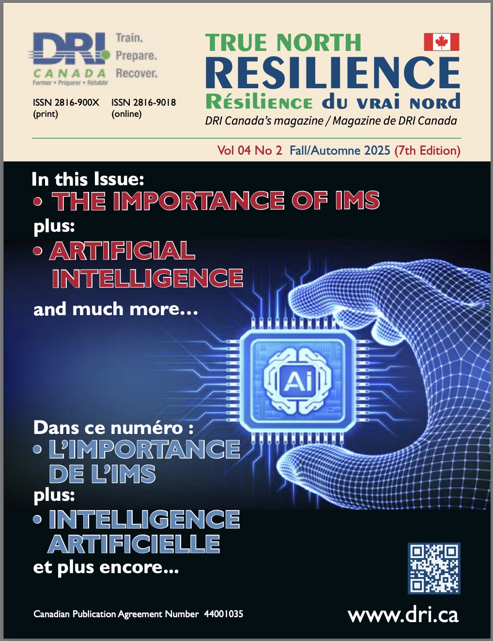 True North Resilience Magazine is a publication of the Disaster Recovery Institute Canada for its certified professionals. True North Resilience Magazine is released twice a year, with three issues published to date. Certified Professionals can access magazines and articles here, through the Knowledge Garden or the DRII Library.